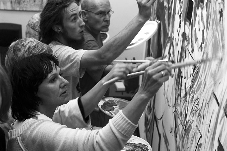 Im Atelier von Peter Blindert wird gemeinsam ein großes Bild erstellt. Die geballte Ladung Kreativität hat mich fast umgehauen. Was für wunderbare Menschen…