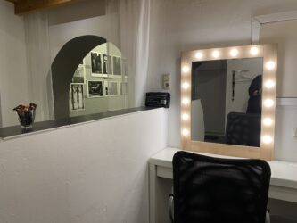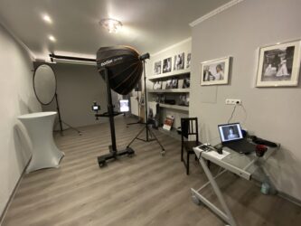 Kleines, aber feines Mietstudio in Schwerte-Westhofen im Süden von Dortmund. Verkehrstechnisch günstig gelegen zwischen A1 und A45, ÖPNV hält in unmittelbarer Nähe. Komplett ausgestattet mit professioneller Blitzanlage, extra Schminkraum und WC. Einfach buchen für halbe und ganze Tage! Der Studioraum ist 3,75m breit, 6,00m lang und 2,80m hoch. Ausgestattet mit einer neutralgrauen Wand (2,50m breit), einer strukturierten hellgrauen Wand, einem elektrischen Hintergrundsystem mit Vinyl-Hintergrundrollen in Weiß, Schwarz und Greenscreen (je 2x6m). Der extra Schmink- und Umkleideraum ist mit einem beleuchteten Spiegel und einem mobilen Ganzkörperspiegel ausgestattet.